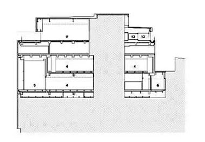 One aspect I found interesting is that despite having the most appealing facade of the whole complex , the building lacks a direct entry. In fact it can be accessed only from within the commercial area, as detailed below. The connection to the street is made through a bridge leading to an entrance to the shops.